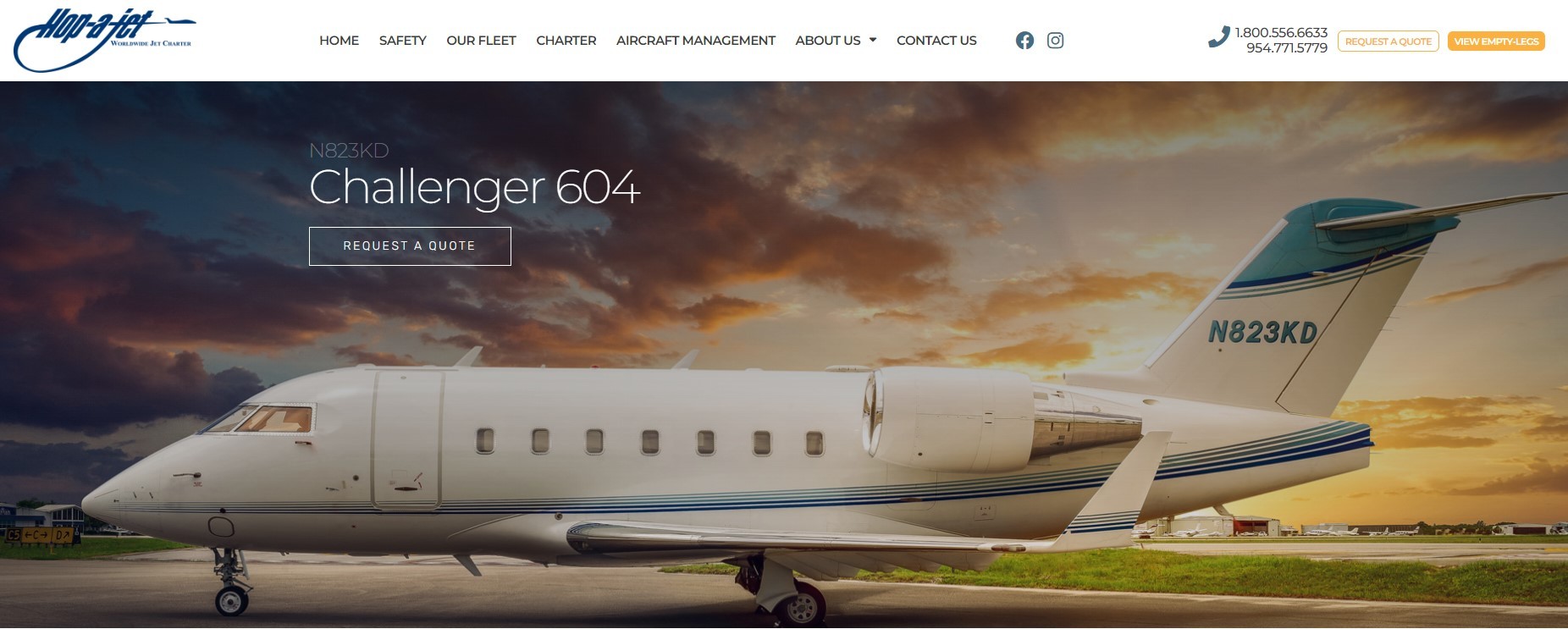 O avião é da companhia aérea Hop-A-Jet, que faz voos fretados de luxo.